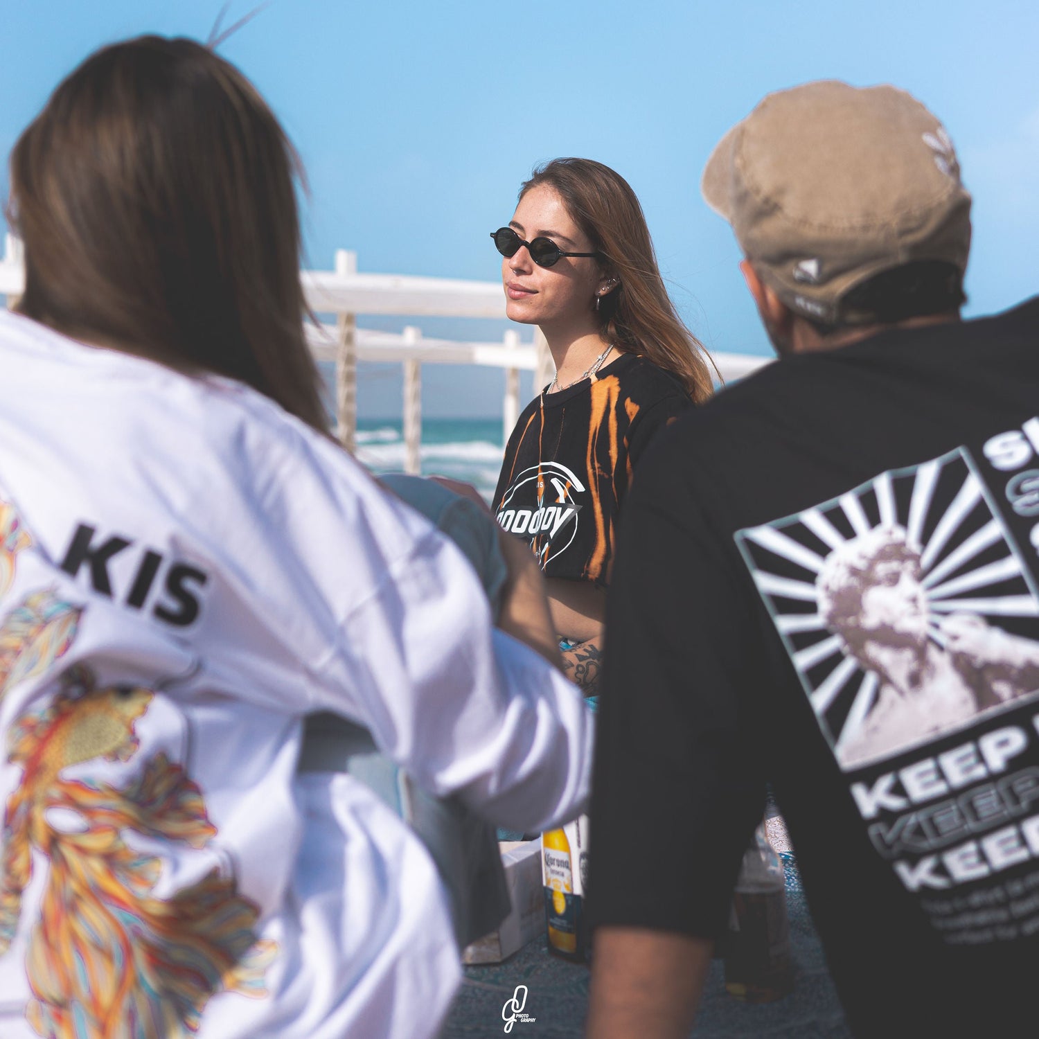 השם שלנו זה Keep It Simple או בקיצור KIS, אנחנו חבורה של מעצבים שעושים שיתופי פעולה עם מקעקעים, אומנים מוזיקליים וכו'.
